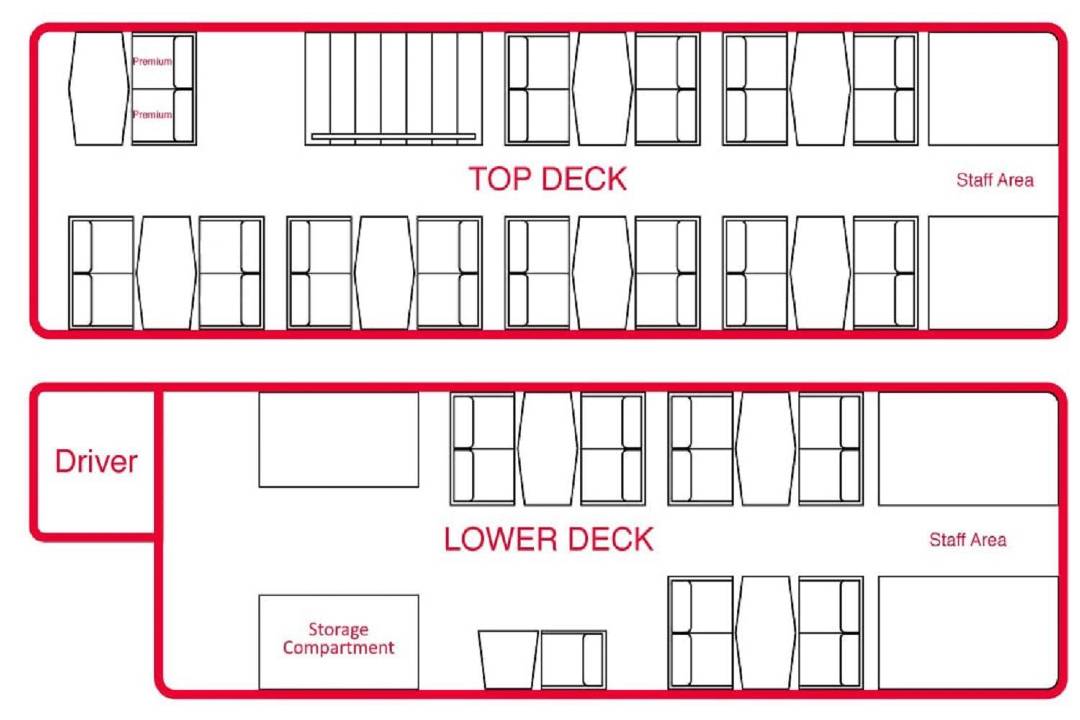 - Asientos en la cubierta superior